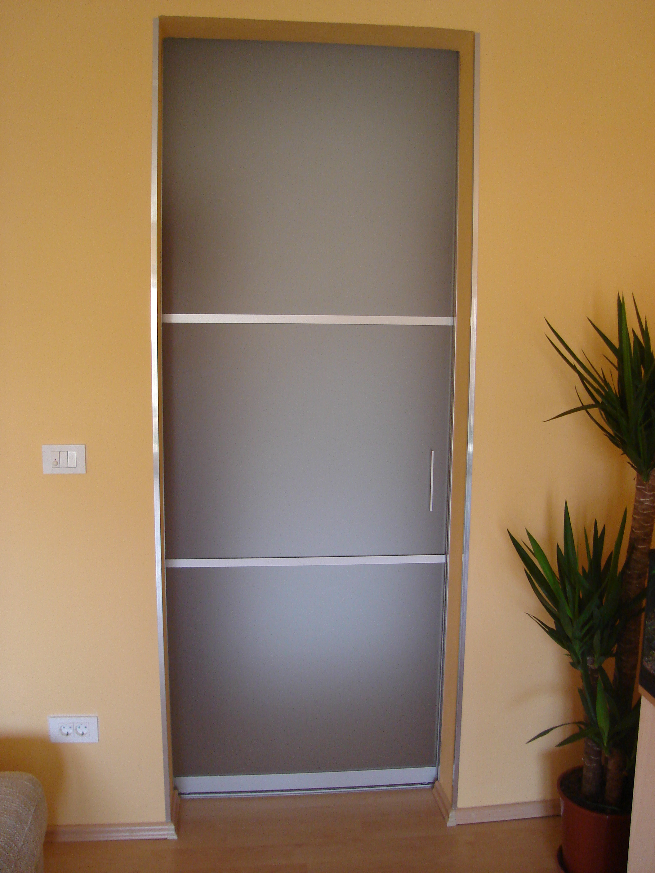 Smo uvoznik in zastopnik za Slovenijo za sisteme drsnih vrat priznanega proizvajalca SYSKOR. V kvalitetne ALU profile, ki so lahko oblečeni tudi v furnir različnih vrst, vgradimo polnilo po Vaši želji. Vedno imamo na zalogi 5 različnih izvedb, s katerimi pokrivamo več različnih stilov. V ALU okvir lahko vgradimo različne vrste stekla, ogledal, več vrst iveralov in furniranih plošč (enobarvni ter lesni dekorji), kot posebnost ponujamo tudi FOTOTAPETE, skratka možnosti je neskončno. Posebnost teh drsnih vrat pa je tudi zavora za počasno ustavljanje, ki poskrbi za enakomerno ustavljanje vrat brez hrupa. Drsna vrata, ki tečejo tiho, brez zatikanja, ter so vedno nekaj posebnega v prostoru, to so drsna vrata KITMAR. Vrata se uporabljajo za vgradne omare, kuhinje, hodnike, pregrajevanje prostorov, itd. Izdelamo jih skupaj z vgradno omaro, ali pa jih izdelamo kot dodatek k vaši obstoječi omari. Glede dobavnega roka in ostalih podrobnosti nas kontaktirajte preko spletnega obrazca ali pa pokličite na GSM 041/832-953.